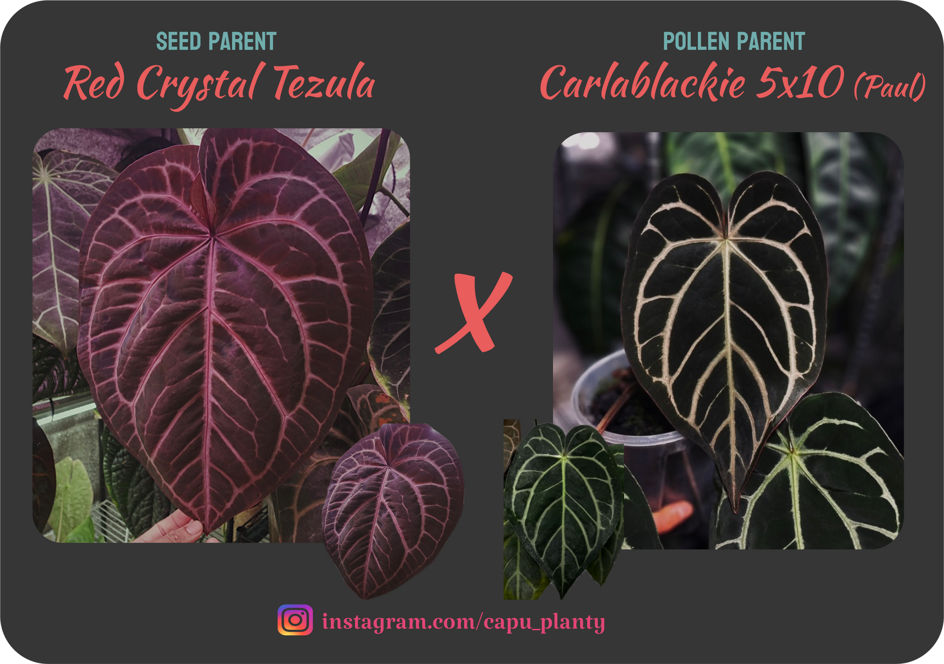 A stunning cross from parents that are carefully selected. Children are expected to be dark, have striking veins and deep red purple emergent.